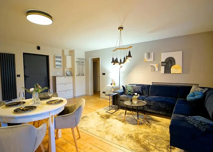 Apartamenty Every Sky Konstytucji 3 Maja 45 Karpaczアパ-トメントには,器具でいっぱいの台所,ソファ,座席 と衛星放送チャンネルの薄型テレビ付きの客室があります. Muzeum Zabawekは施設から自動車で10分,Klocki Karpaczは徒歩ですぐです.